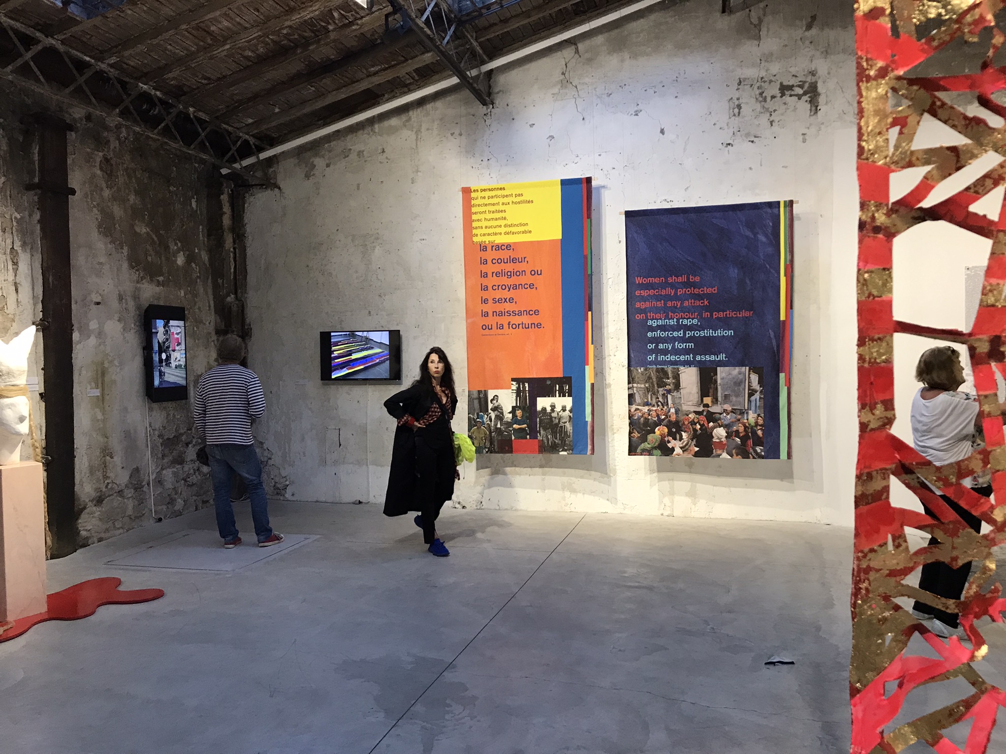 En écho à l’Appel solennel, le CICR a demandé à l’artiste Françoise Bridel de concevoir cinquante bannières géantes sur le thème des Conventions de Genève.